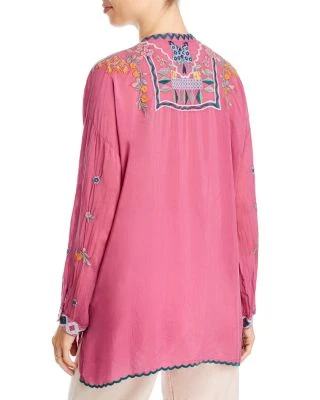 - Long roll-tab sleeves with button closure, dropped shoulders