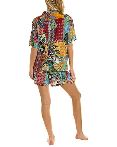 - Carolyn Silk Short Set in multicolor with spread collar blouse and slip-on short