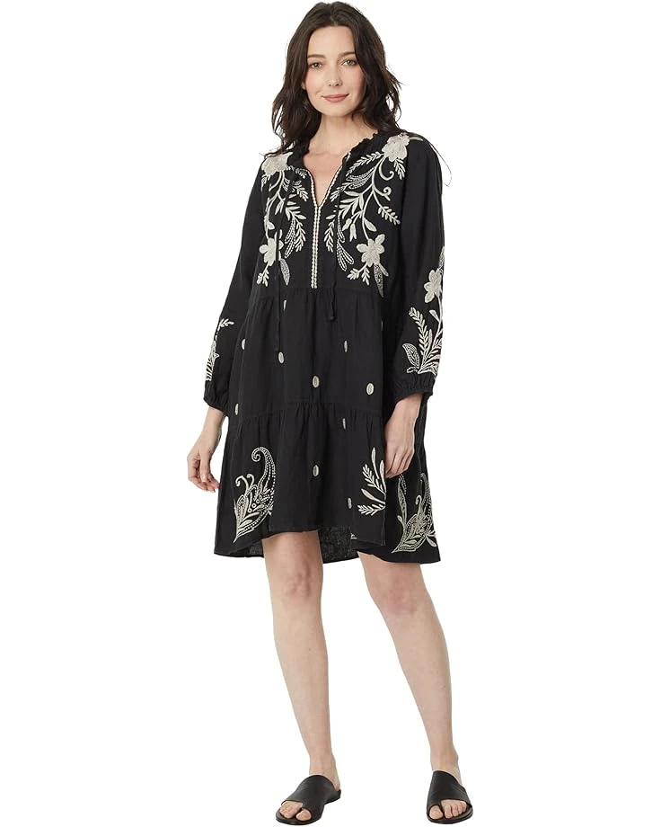 Johnny Was® Frankie Tiered Field Dress is a chic and practical choice for your warm weather outings, getaways, or poolside lounging sessions.SKU: #9891527Relaxed fit.Notched V-neckline with drawstring tie detailing.Long sleeves with elasticized cuffs.Allover contrasting floral embroidery work.Tiered silhouette.100% linen.Dry-clean.Imported.
