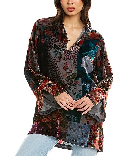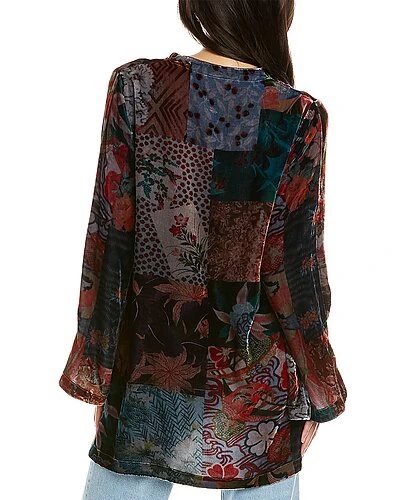 - Grace Silk-Blend Tunic in multicolor with velvet design and vented bell sleeves