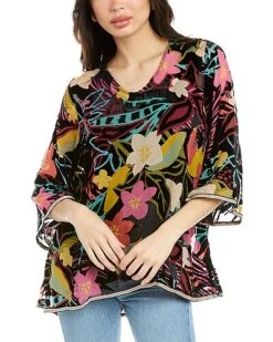 - Wild Deanna Silk-Blend Blouse in multicolor with V-neck, 3/4-length sleeves, and high-low hem