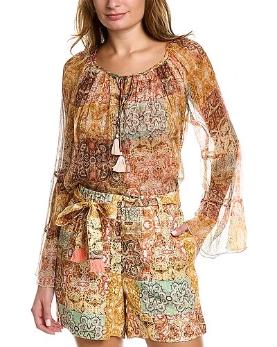- Kanarra Tiered Silk Blouse in multicolor with flare sleeves