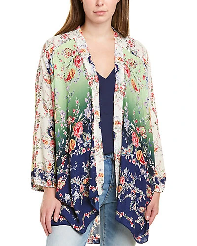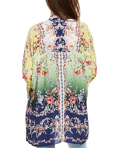 - Maypo Kimono in multicolor with printed design, shawl lapel, and high-low hem