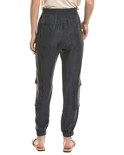 - Rayne Pant in grey with drawstrings from elasticized waist, four-pocket styling, dual pant leg pockets