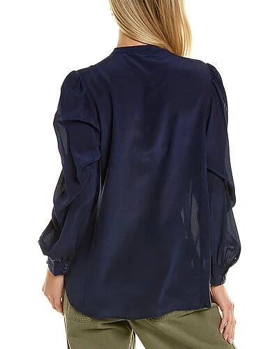 - Riviera Silk Blouse in sapphire blue with mandarin collar and button cuffs
