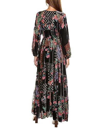 - Rose Burnout Uma Silk-Blend Dress in multicolor with floral burnout design, elasticized cuffs, and dual side on-seam pockets