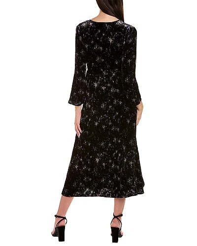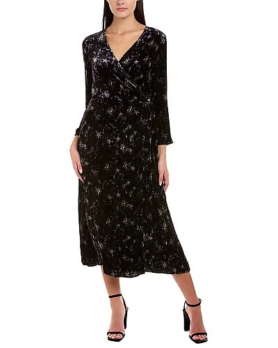 - Stardust Silk-Blend Wrap Dress in multicolor with wrap style and 3/4-length sleeves