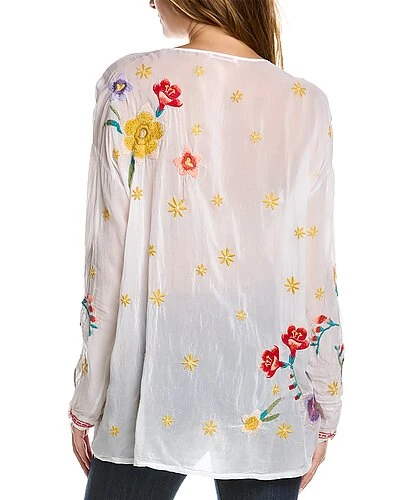 - Texa Tunic in white with embroidered detailing and dropped-shoulder sleeves