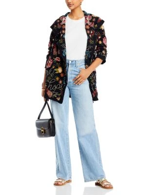 - Allover contrast embroidery