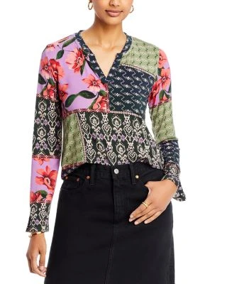 Zanda Split Neck Patchwork Top – Johnny Was